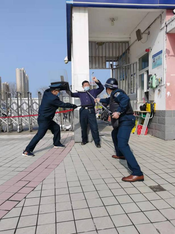 这次演练由安保部牵头,目的是进一步加强安保人员的防范意识,确保在暴力袭击事件发生时,能够及时制止暴徒的袭击,从而提高安保人员对突发性暴力事件应急处置能力,保护学校师生的安全。在现场演练前,安保部经理杨镐做了动员讲话,对演练活动进行了部署,并对防暴器材的正确使用开展了培训。