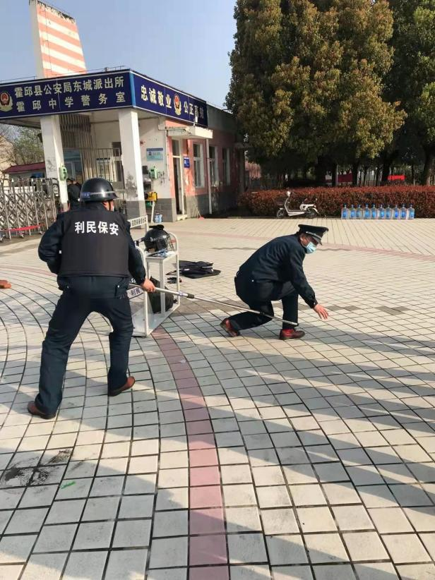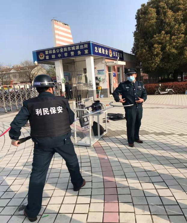 为加强校园安全管理,有效防范突发伤害事件,切实保障广大师生人身安全,2022年3月23日上午9点,我公司驻霍邱中学保安中队,结合近日员工技培训工作,在校园组织开展了反恐防暴演练活动。