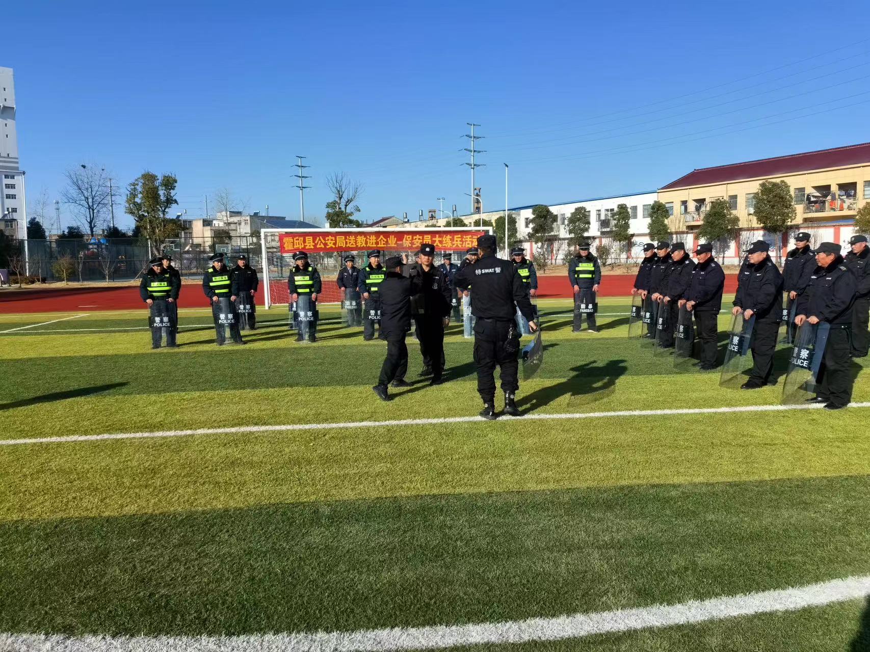 元月4日,霍邱县公安局在矿区组织开展了“送教进企业-保安员大练兵”活动,我公司在接到活动任务后,总经理徐丛红亲自安排,并和分管副总经理杨镐到现场,抽派富凯矿业保安十余名参加练兵活动。
