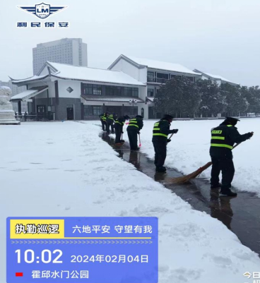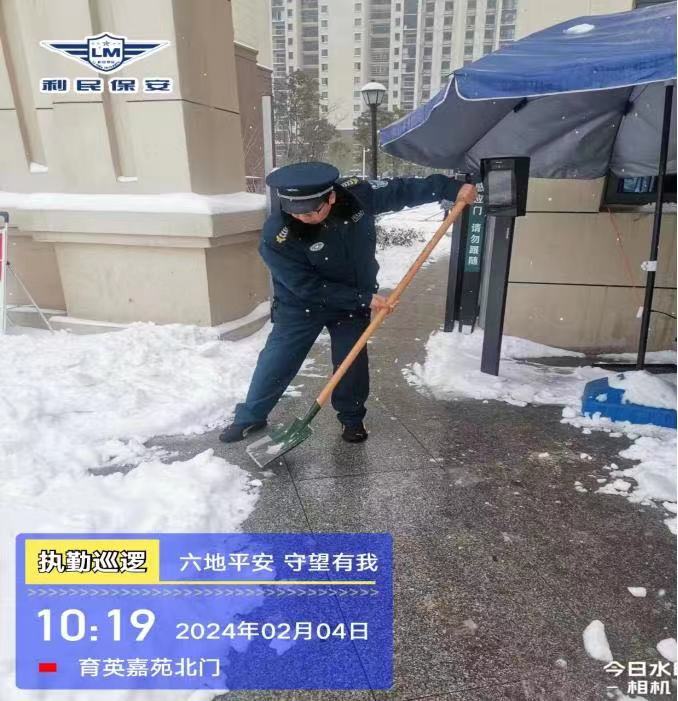 伴随着气温骤降,一场暴雪如约而至。雪情就是命令,为保障客户单位工作的顺利开展和出行的畅通、安全。我公司保安员、保洁员迅速开展清扫工作,各“平安守望点”的同志也积极参与其中,大家“浴雪”奋战,积极投身到铲雪除冰行动中。