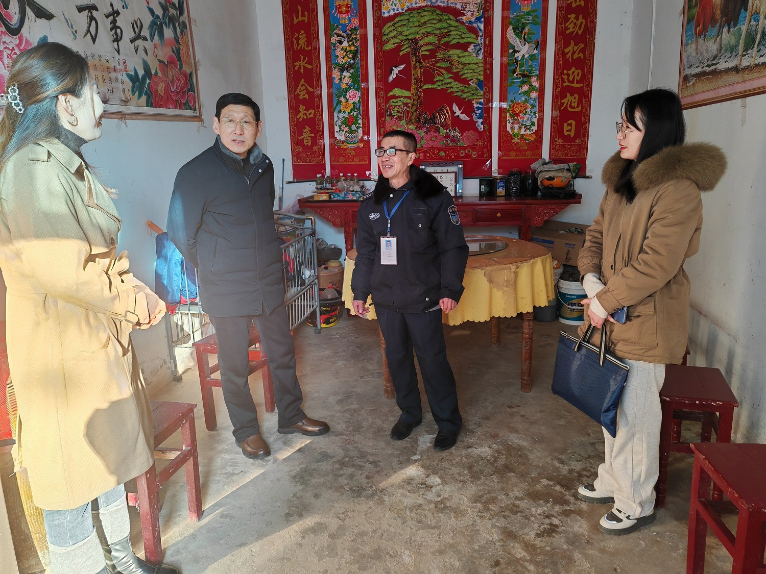 在新春佳节即将来临之际,安徽省利民保安服务有限公司处处洋溢着温暖与关怀的氛围。公司董事长李光明、副总叶欢、工会主席张丽及安保部副经理武培风一行,走村串户,开展温馨而有意义的春节慰问活动,为员工送上了满满的新春祝福与关爱。