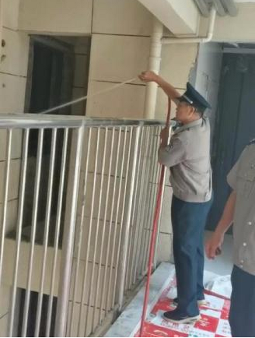 二、现场处置专业高效。一是分工协作。抵达现场后,保安员凭借过硬的专业技能,科学分工:一组人员紧急疏散周边楼层业主,确保人员安全撤离;另一组人员迅速启用现场消防设施,精准扑救初期火灾。二是联动有序。监控室全程与现场保持实时联动,及时通知楼栋管理员及增援力量,并密切跟踪火情进展。三是控制得力。处置过程组织严密、配合默契、操作规范,有效遏制了火势蔓延。