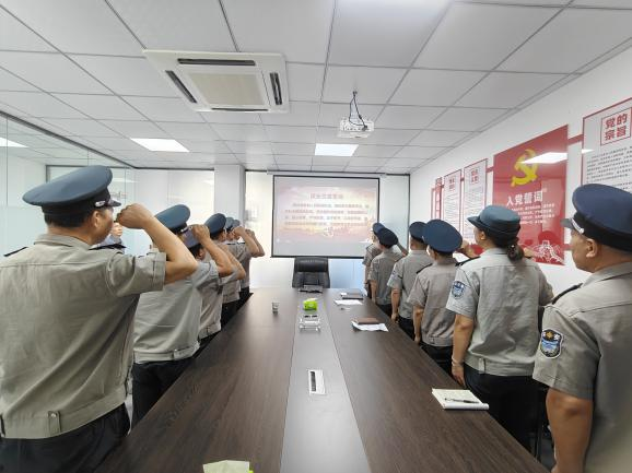 活动中,全体保安员在安保部副经理武培风的带领下,面向岗位职责,庄严宣誓,重温了守护安全、服务社会的初心使命,表达了恪尽职守、奋勇争先的决心。