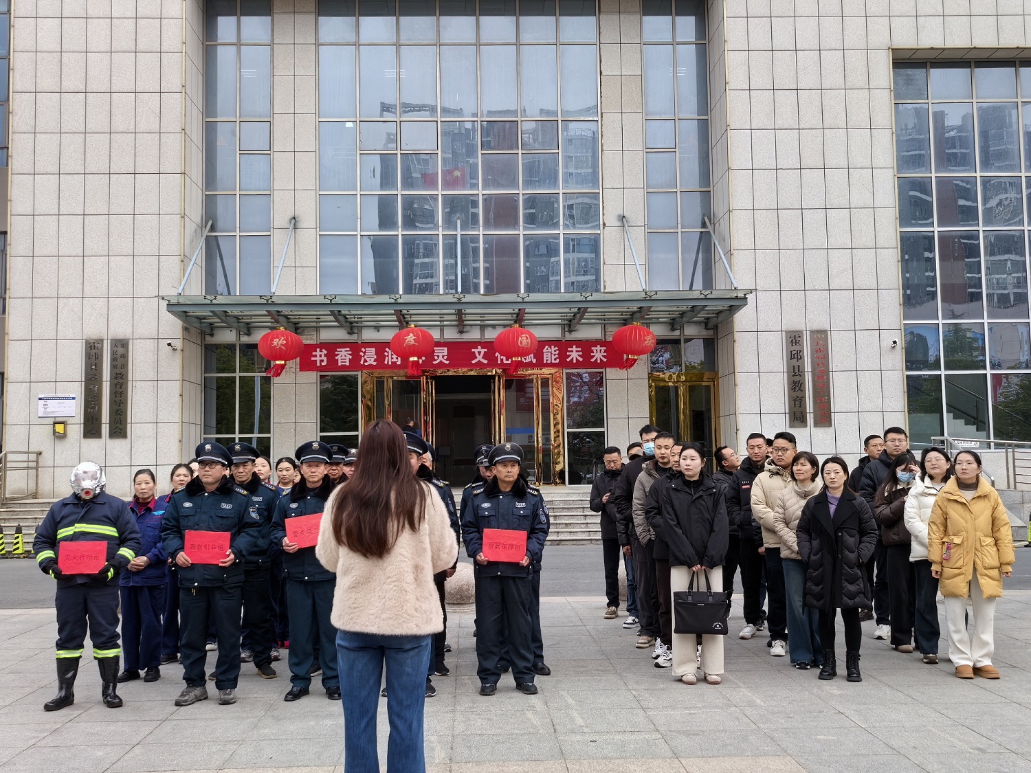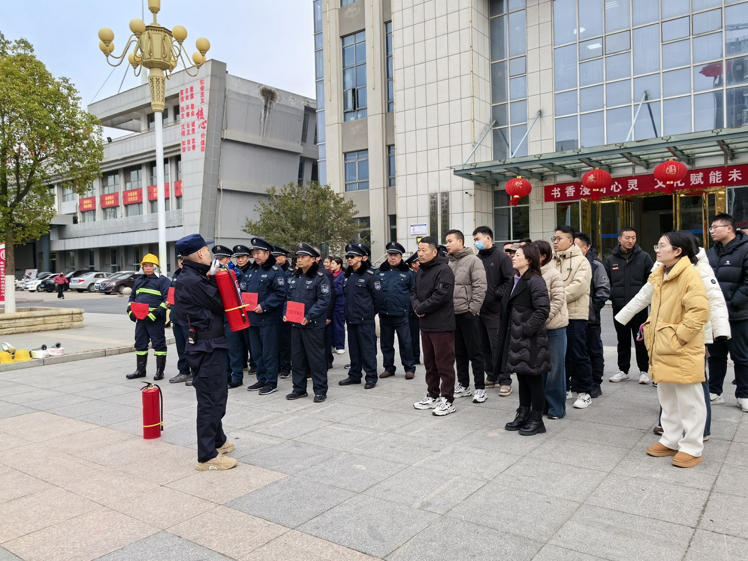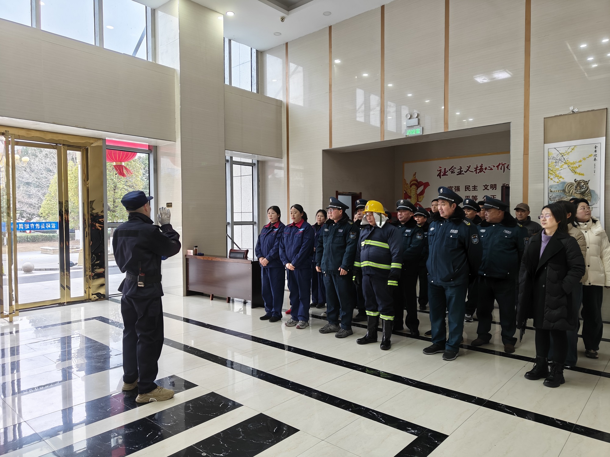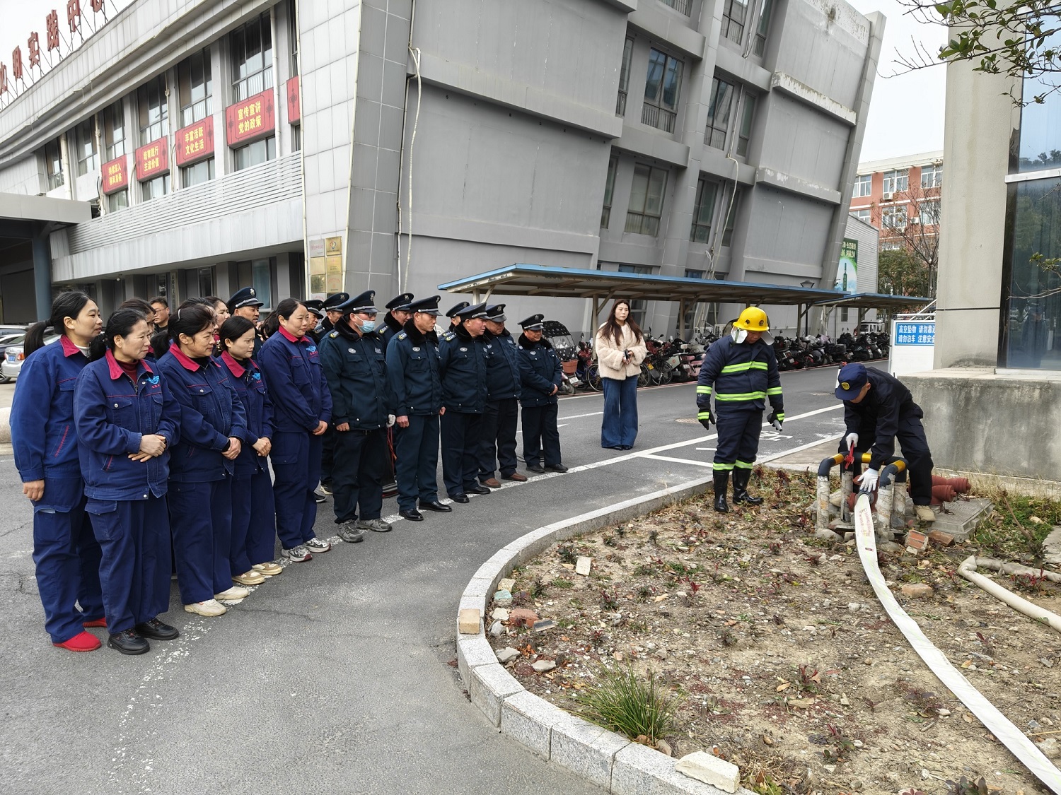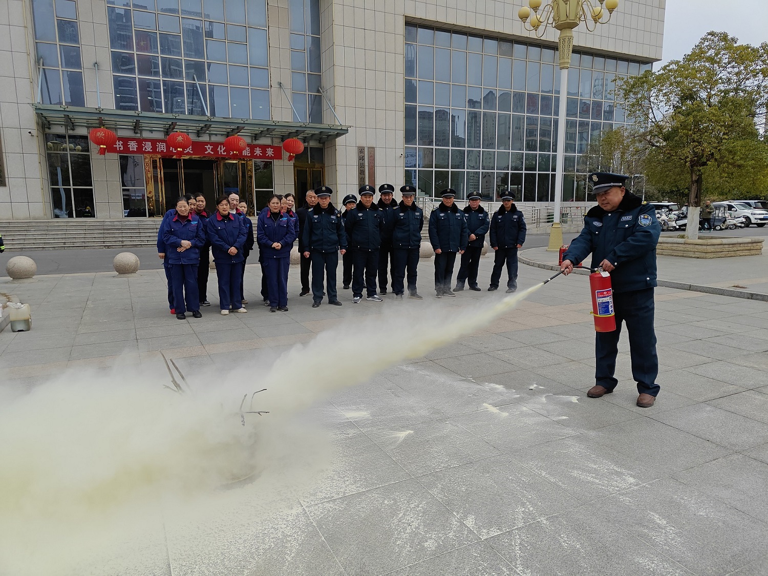 时值年末岁首,为切实提升办公人员和物业服务人员消防安全意识与应急处置能力,筑牢安全防线,2025年12月31日上午,我司在该楼组织开展了冬季消防培训演练。教育局党委委员刘树亚、办公室副主任陈丽丽及东楼部分单位分管领导到场指导,办公楼所有单位派员参加,物业服务全体工作人员全程参与。