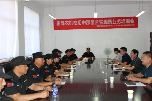 为落实服务方案,规范管理行为,2020年8月17日,公司在霍邱中学举行进驻仪式暨宿管员培训会。农机校董事长李林涛亲临现场指导,并提出严格要求;学校副校长李志磊,公司总经理李光明、副总经理徐丛红及项目经理、相关部门负责人、全体宿管人员参与会议,会议由李光明总经理主持。