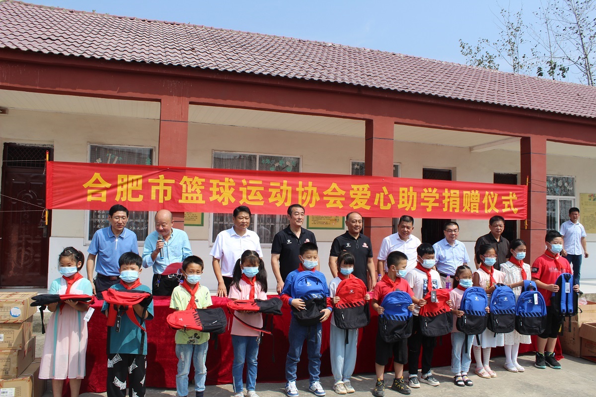 上午10时,捐赠仪式正式开始,岔路镇中心校校长王锐致欢迎词,王勇副主席代表合肥市篮协、时兆明镇长代表岔路镇人民政府分别讲话,天胡小学少先队员代表学校致谢,有关领导向学生代表发放了书包和学习用具,学校还向协会赠送了锦旗。 县政府督察室主任李蓬、文旅体育局长马为民、岔路镇镇长时兆明、县教育局副局长巫涛、岔路镇中心校校长王锐、公司总经理李光明以及合肥市篮球运动协会主席杨云、副主席王亮等一行10人参加了仪式。教育局副局长巫涛主持仪式。