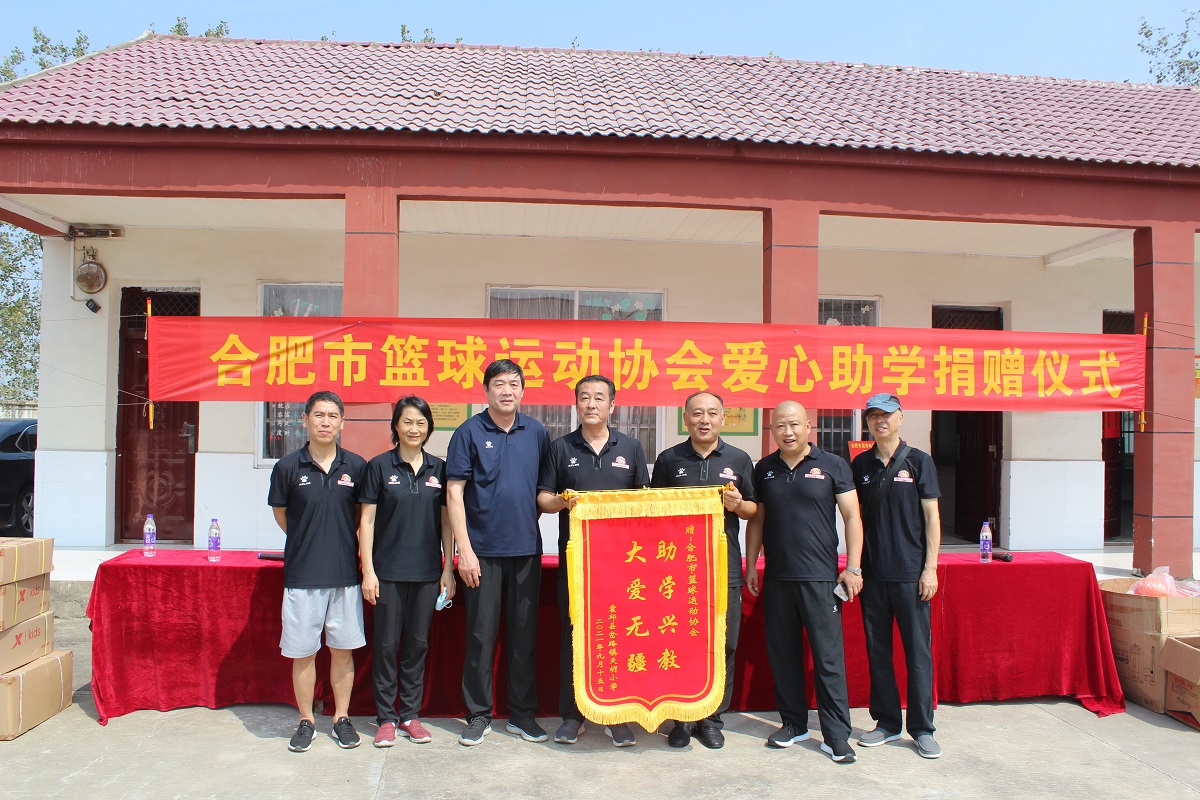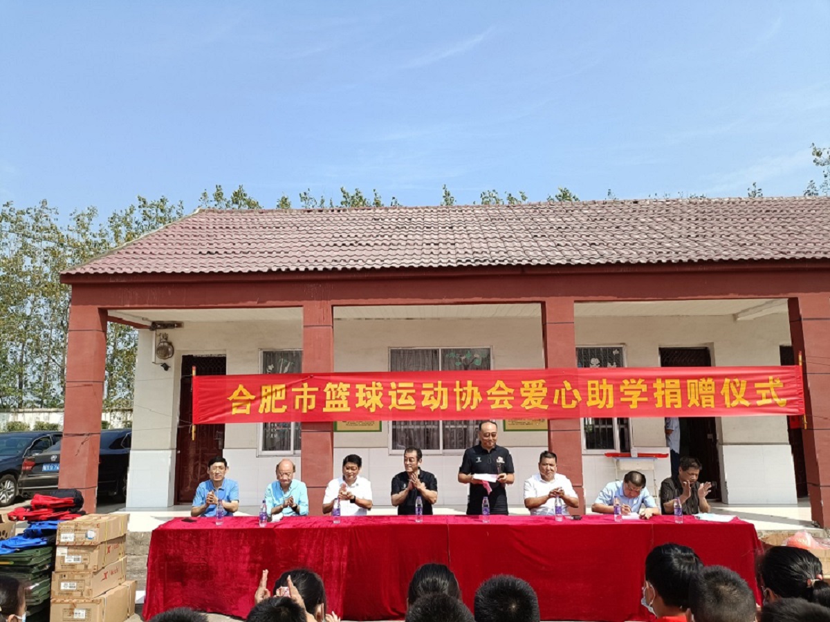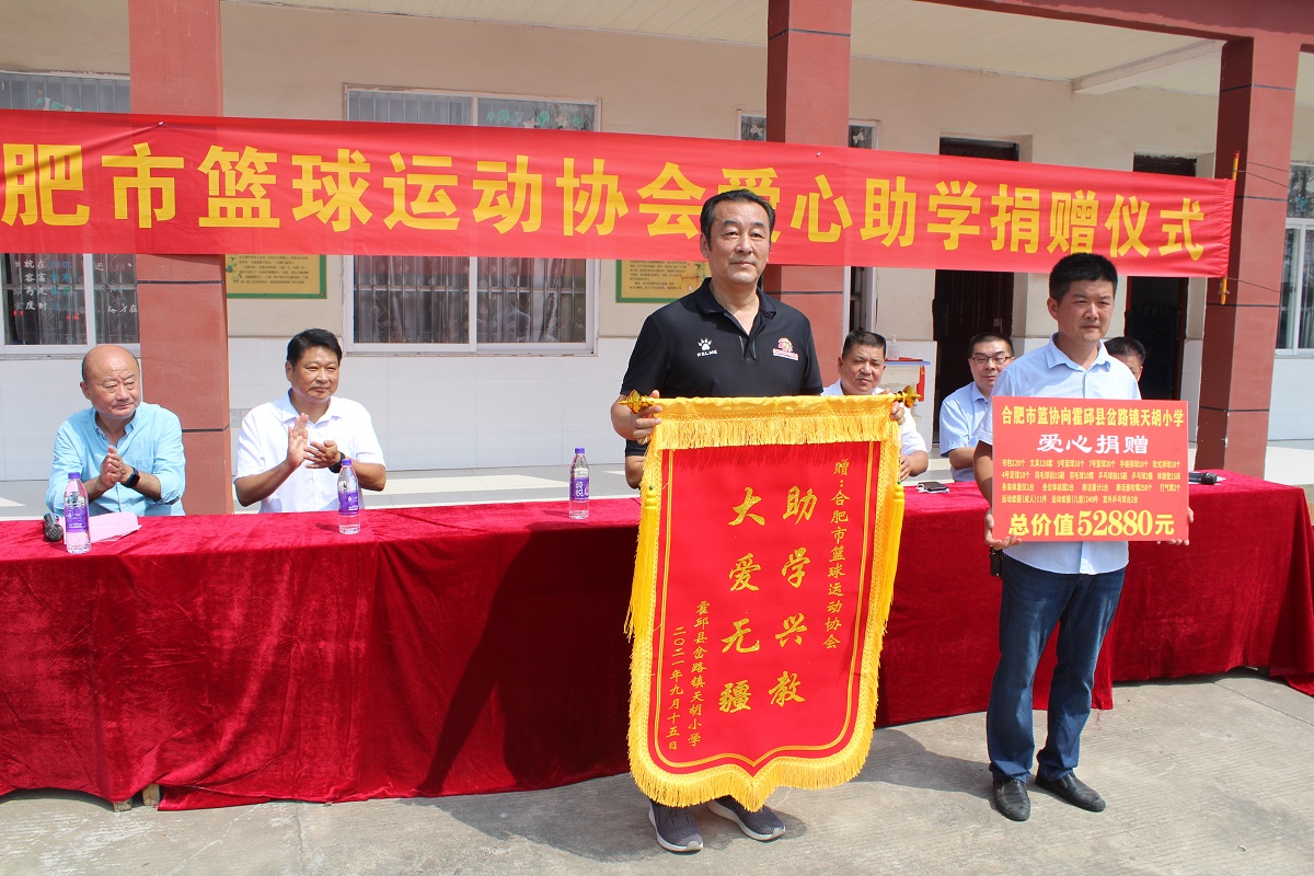 2021年9月15日上午,岔路镇天胡小学校园里洋溢着喜庆的气氛,来自合肥市篮球运动协会和县镇两级的领导和嘉宾,与天胡小学的师生们,欢聚一堂,共同举办一场简单而热烈的捐赠仪式。